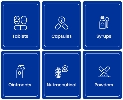 Our modern, WHO-GMP-certified facilities are equipped to handle a wide range of pharmaceutical and healthcare formulations, including:
